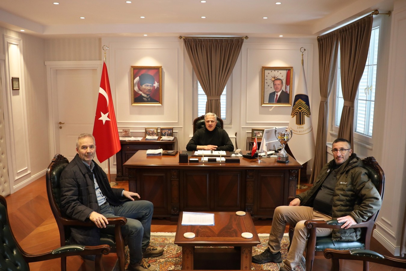 İl Genel Meclis Üyemiz Recep Bahar ve Sayın Levent Karanlık, Başkanımız H. Sinan Acar’ı makamında ziyaret etti. Nazik ziyaretleri için kendilerine teşekkür ederiz.