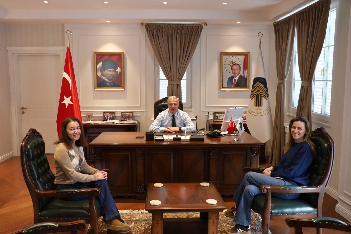 İlçemiz halkından Banu Acar ve Bediş Arman, Belediye Başkanımız H. Sinan Acar’ı makamında ziyaret etti. Nazik ziyaretleri için kendilerine teşekkür ederiz.