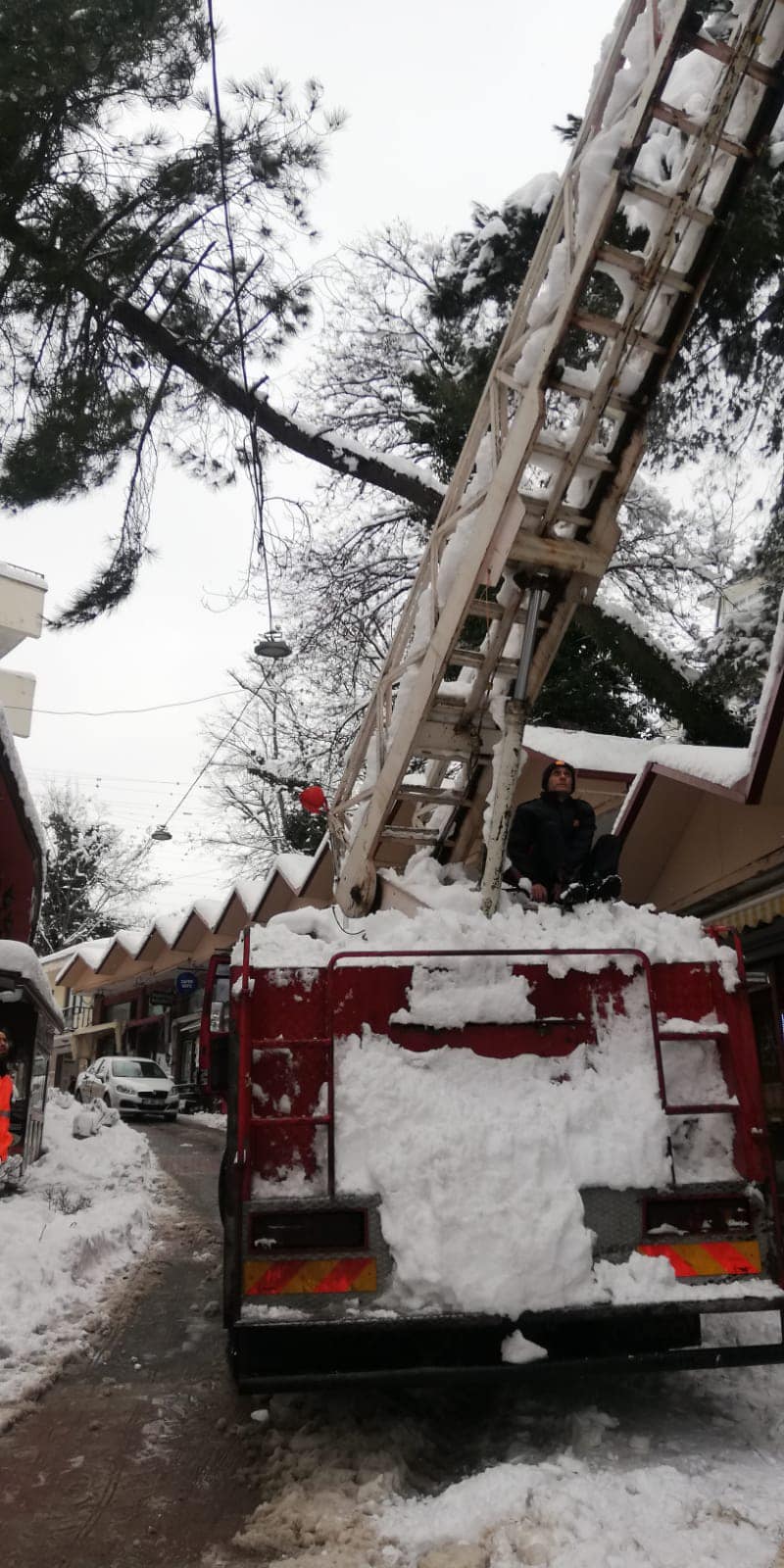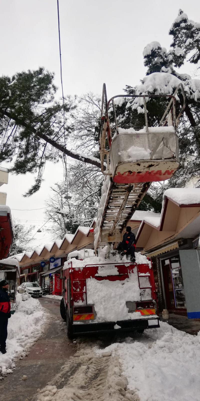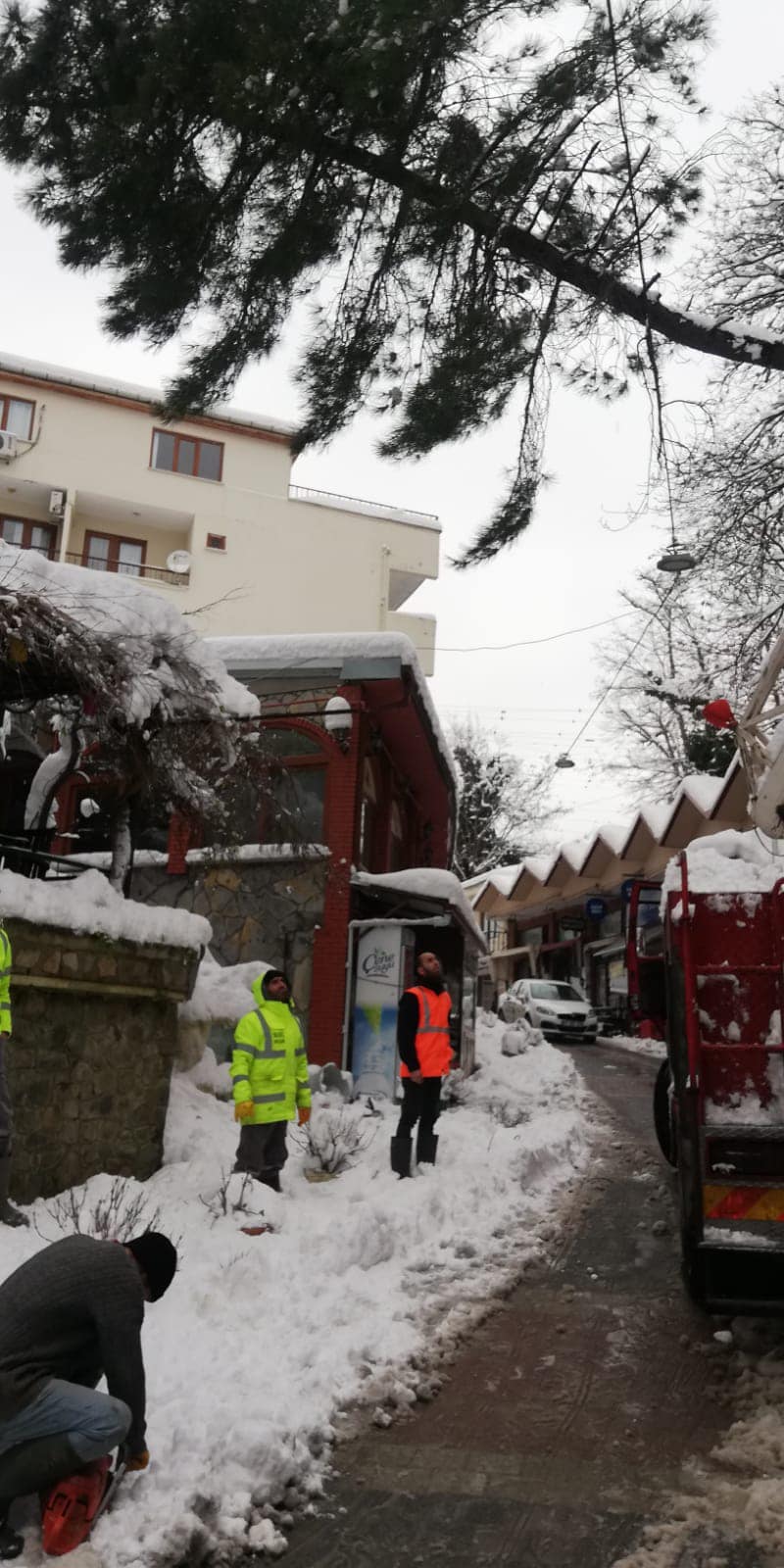 Belediyemiz Fen İşleri Müdürlüğü'ne bağlı Çevre ve Temizlik İşleri ekipleri tarafından, yoğun kar yağışı sebebiyle yıkılan ağaçların, yaya ve araç trafiğini tehlikeye sokmasını engellemek amacıyla budama ve kaldırma işlemleri yapılmaktadır.