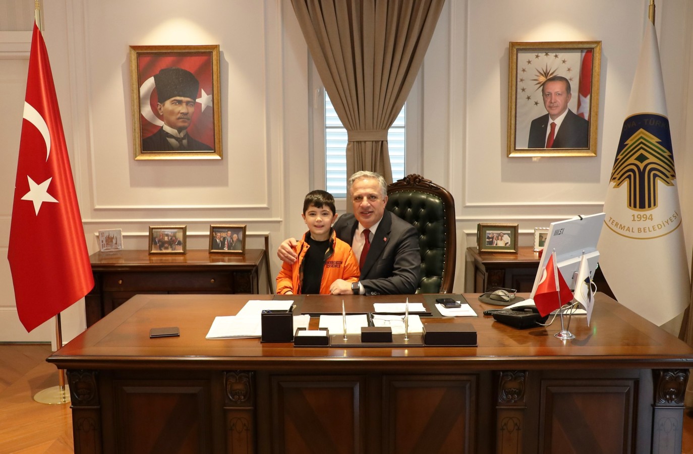lçemizin minik misafirlerinden Efe Kaş, Belediye Başkanımız H. Sinan Acar’ı makamında ziyaret etti. Nazik ziyaretlerinden dolayı kendisine teşekkür ederiz.