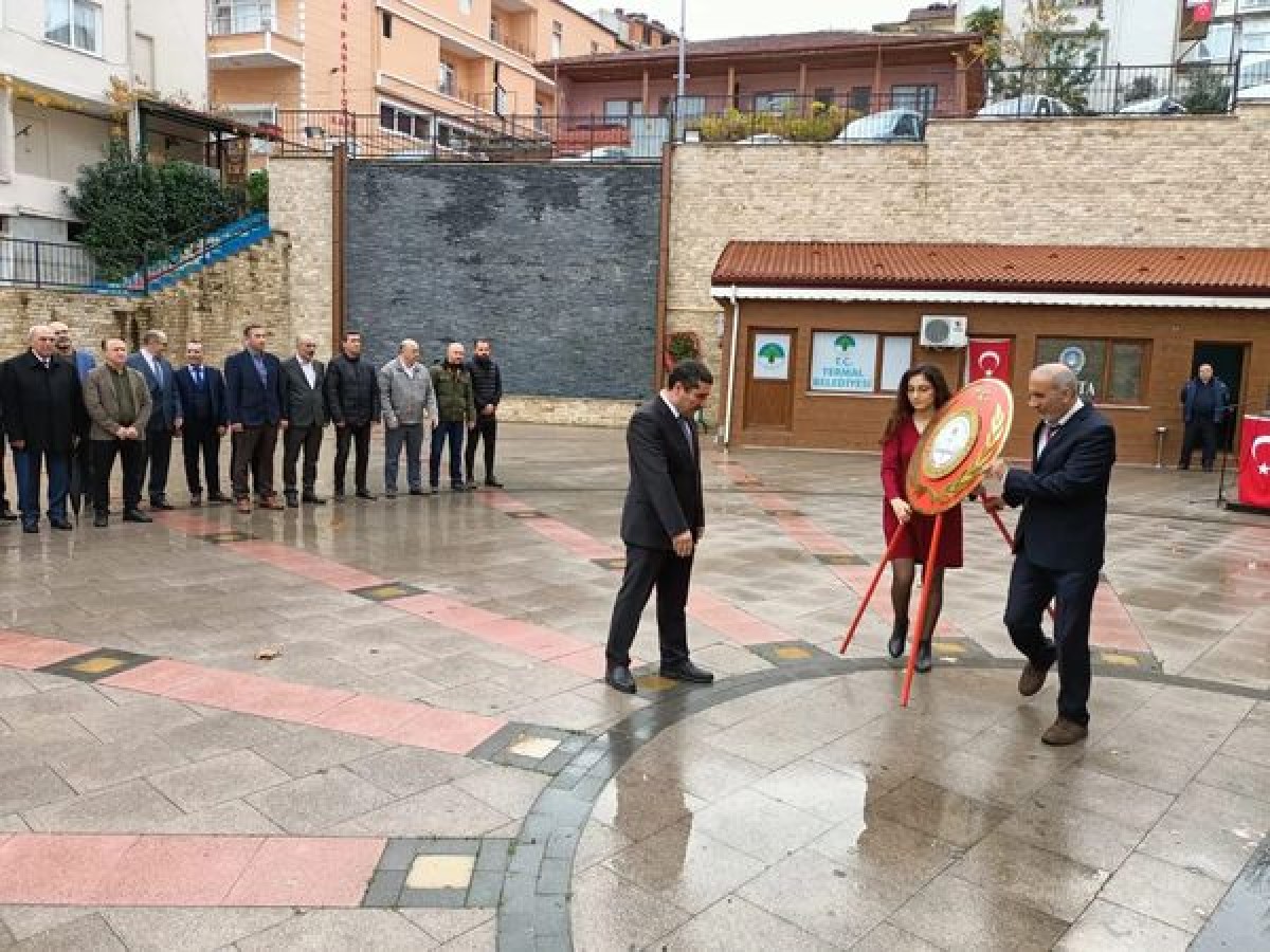 Belediye Başkan Vekili Deniz Öz, 24 Kasım Öğretmenler Günü kapsamında Termal ilçe meydanında düzenlenen törene katılım sağladı. Saygı duruşu ve İstiklal Marşı ile başlayan tören çelenk bırakılmasının ardından son buldu.Termal Belediyesi olarak tüm öğretmenlerimizin Öğretmenler Günü' nü tekrardan kutlarız.