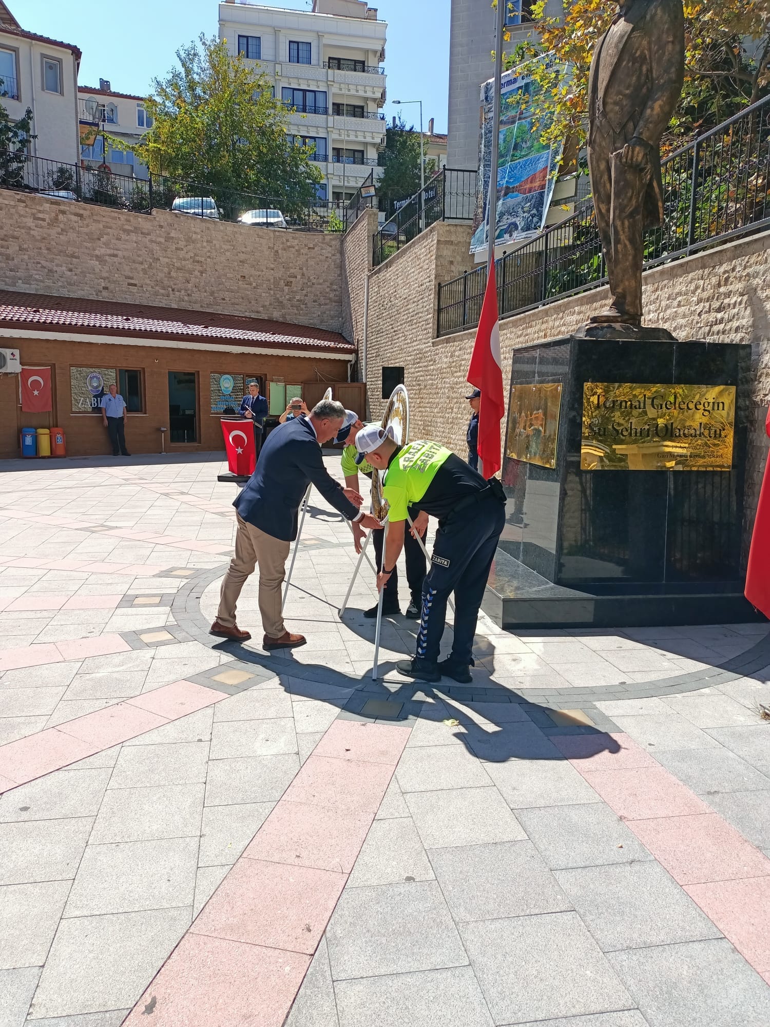 Belediye Başkanımız H.Sinan Acar, Termal Meydan' da düzenlenen 19 Eylül Gaziler Günü programına katıldı. Törene Termal İlçe Kaymakamı Sayın Faruk Doğru, İlçe Jandarma Komutanı Çağrı İzci ,İlçe Emniyet Amiri Rıdvan Demirel, Ak Parti İlçe Başkanı Recep Bahar ve İl Genel Meclis üyesi İsmail Akar katıldı. Saygı duruşu ve İstiklal Marşı ile başlayan tören çelenk bırakılmasının ardından son buldu. Vatan, millet uğruna canları hiç düşünmeden siper eden tüm gazilerimizin tekrardan Gaziler Gününü kutluyoruz.
