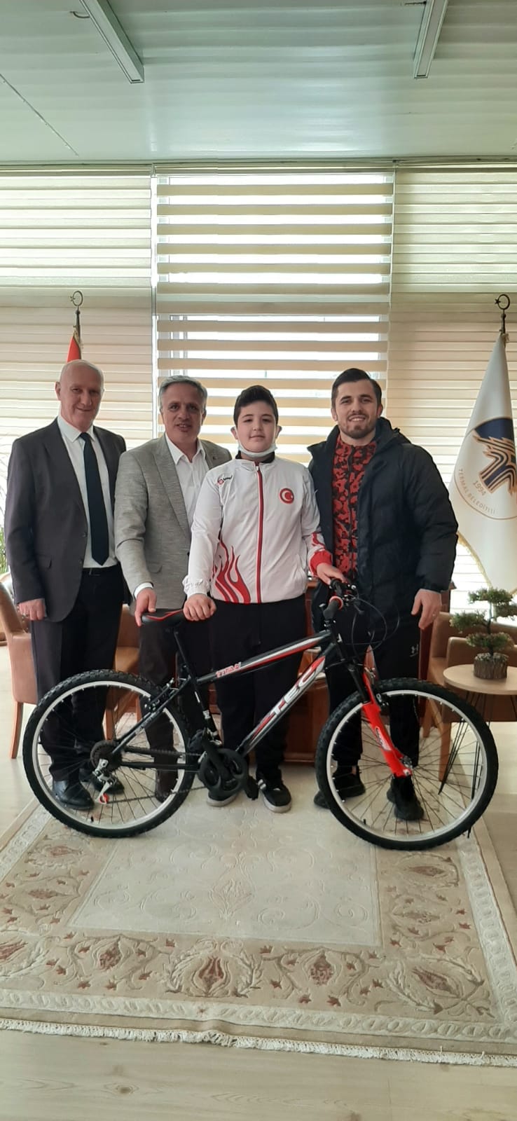 Belediye Başkanımız H.Sinan Acar, Afyon' da düzenlenen 11-13 yaş arası Serbest Güreş Şampiyonası 88 kg' da Türkiye ikincisi olan Ahmet Soysal ve antrenörü Serkan Çavuşoğlu' nu makamında ağırlayarak, tebrik etti. Türkiye Şampiyonasına Termal Belediyespor Güreş takımı adına katılarak bizleri gururlandıran genç Ahmet' e Belediye Başkanımız tarafından bisiklet hediye edildi. Ahmet Soysal ve antrenör Serkan Çavuşoğlu' nu tekrardan tebrik ediyor, başarılarının devamını diliyoruz.