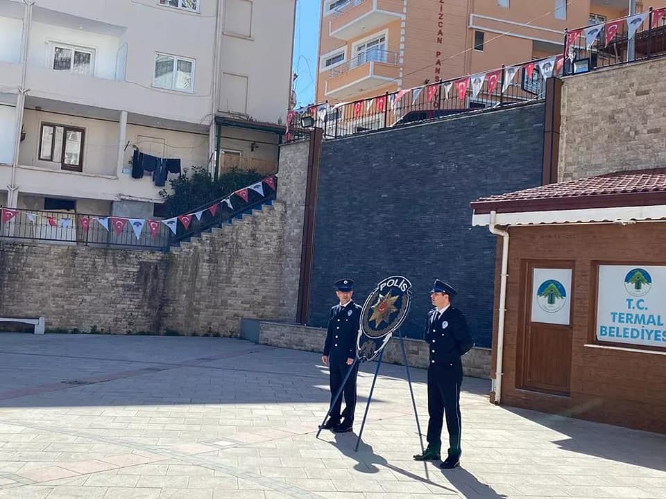 Belediye Başkanımız H.Sinan Acar, Türk Polis Teşkilatının 177. Kuruluş Yıldönümü nedeniyle Termal Meydan' da düzenlenen törene katıldı.