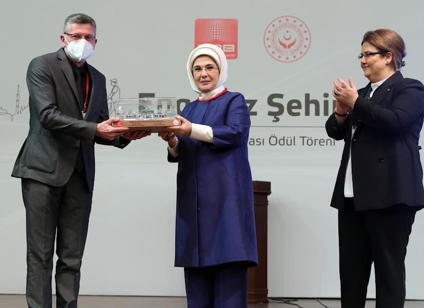 Belediye Başkan Vekilimiz Zafer An, Pendik Belediyesi Yunus Emre Kültür ve Sanat Merkezi'nde gerçekleştirilen, Aile ve Sosyal Hizmetler Bakanlığı ile Türkiye Belediyeler Birliği (TBB) tarafından engelli bireylerin günlük hayatlarında kısıtlama, sıkıntı ve engelle karşılaşmadan, herhangi bir yardıma muhtaç kalmadan tüm kentsel hizmetlere ulaşmalarını sağlayacak faaliyetlerin geliştirilmesi ve toplumsal farkındalığın artırılması amacıyla düzenlenen Engelsiz Şehirler Fikir ve Proje Yarışması'nın ödül törenine katıldı. Törene Cumhurbaşkanımız Recep Tayyip Erdoğan'ın eşi Emine Erdoğan, Aile ve Sosyal Hizmetler Bakanımız Derya Yanık, TBB ve Gaziantep Büyükşehir Belediye Başkanımız Fatma Şahin’ in yanı sıra yarışmaya katılan Belediyelerimizin başkanları ve temsilcileri katılım sağladı. "Paralimpik Oyunlar Merkezi Projesi" ile katıldığımız yarışmada kendi dalında birinci olan belediyemizde, Belediye Başkan Vekilimiz Zafer An, ödülü Sayın Emine Erdoğan hanımefendinin elinden aldı. Engelsiz Şehirler Fikir ve Proje Yarışması’ nda, ödüle layık görülen Termal Paralimpik Oyunlar Merkezi Projesi ile engelli kardeşlerimizin, akıllı şehir teknolojileri ile şehir yaşamına katılımlarını kolaylaştırmayı hedefliyor, engelsiz bir yaşam için bizde varız diyoruz.