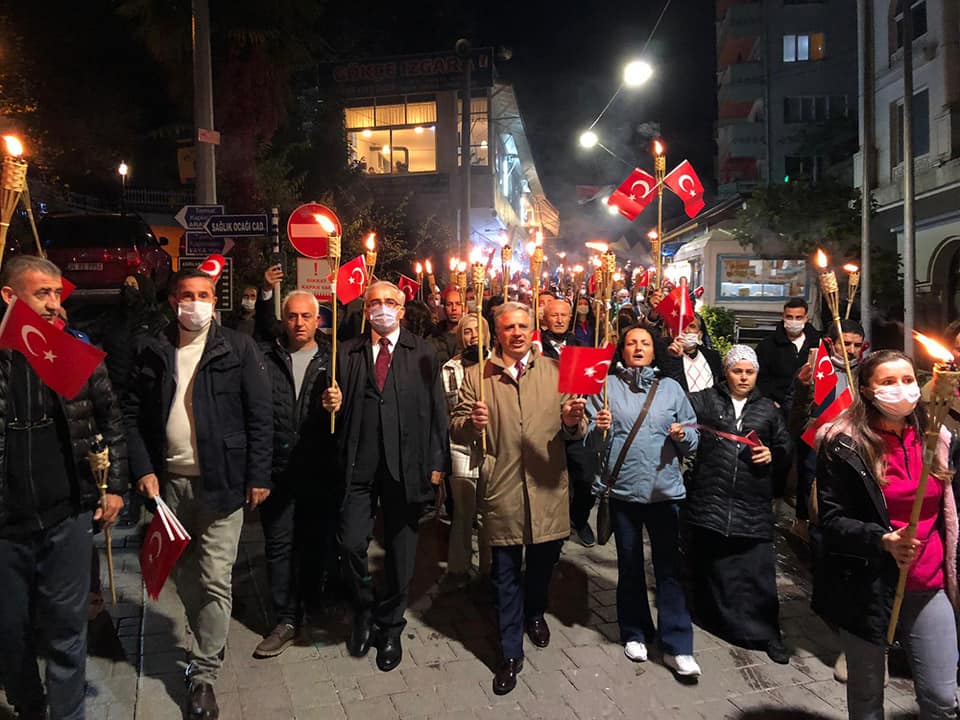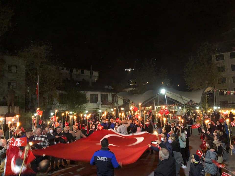 29 Ekim Cumhuriyet Bayramı etkinlikleri kapsamında, İlçemizde Cumhuriyet Bayramı Fener Alayı yürüyüşü düzenlendi. Cumhuriyet şarkıları eşliğinde başlayan yürüyüşe Belediye Başkanımız H.Sinan Acar, İlçe kaymakamımız Vehbi Bakır, İlçe protokolü, çocuklar ve vatandaşlarımız ellerinde meşale ve bayraklar ile katılım sağladı.