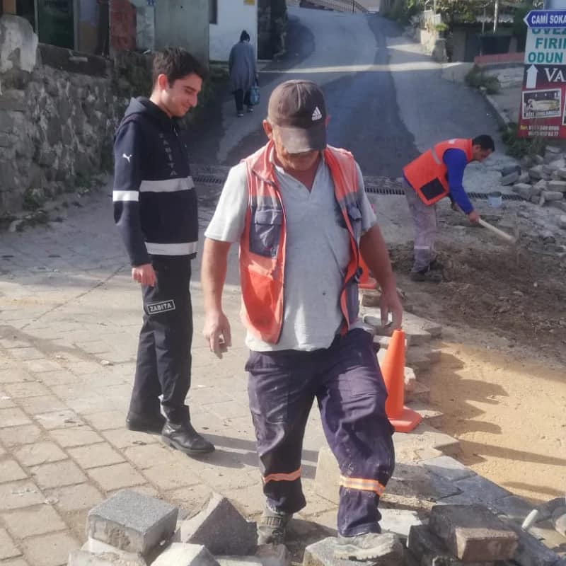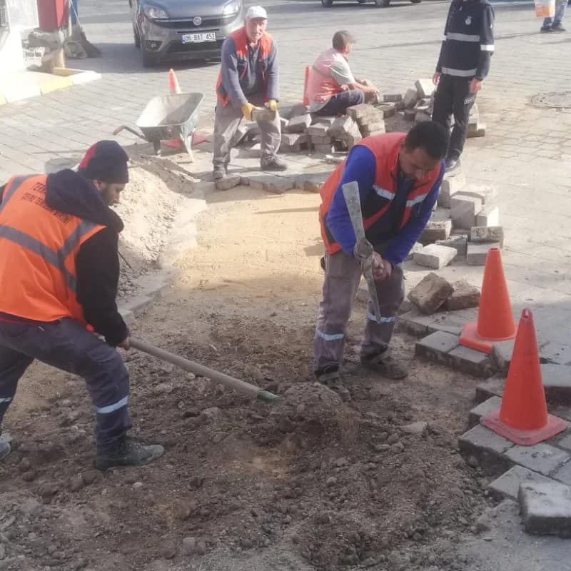Belediyemiz Fen İşleri Müdürlüğüne bağlı Çevre ve Temizlik İşleri saha ekipleri, bozulan ve deforme olan parke taş kaplama yolların tamir işlerini yaparak yollarımızın sürekli ve verimli bir şekilde kullanılmasını sağlamaktadır.