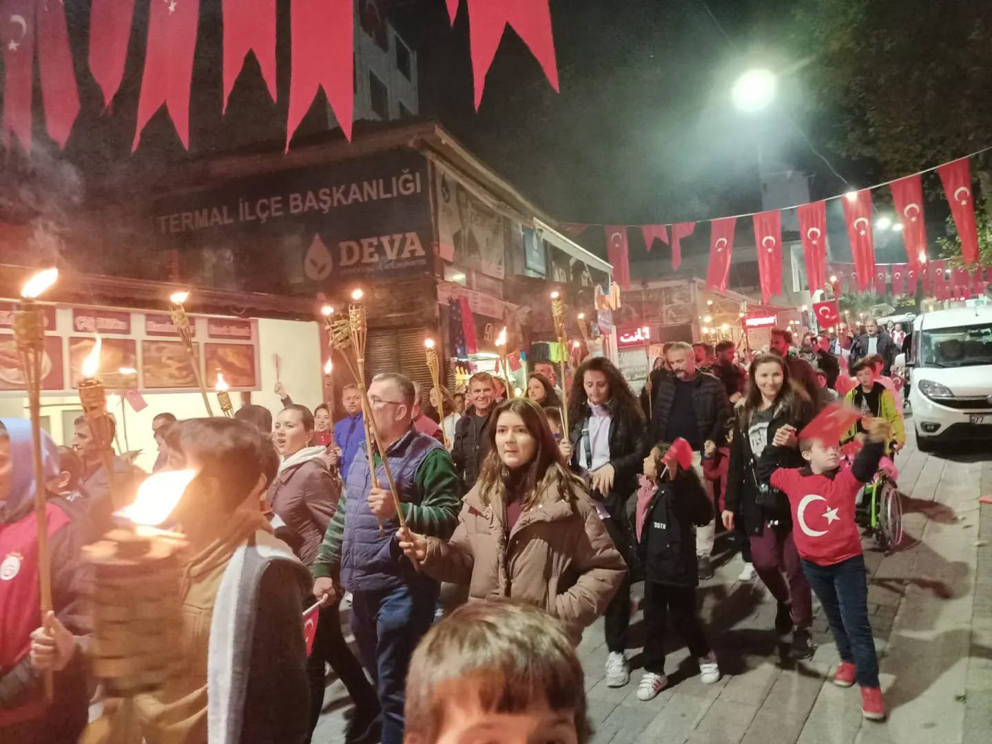 29 Ekim Cumhuriyet Bayramı etkinlikleri kapsamında, İlçemizde Cumhuriyet Bayramı Fener Alayı yürüyüşü düzenlendi. Cumhuriyet şarkıları eşliğinde başlayan yürüyüşe Belediye Başkanımız H.Sinan Acar, İlçe Kaymakamımız Faruk Doğru İlçe Emniyet Amiri Rıdvan Demirel ilçe protokolü, çocuklar ve vatandaşlarımız ellerinde meşale ve bayraklar ile katılım sağladı.
