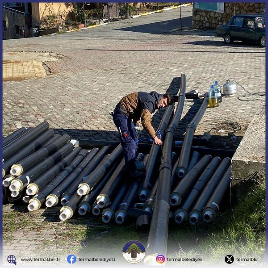 İlçemizde mevcut olan jeotermal boru ishale hatlarına ilave boru hattı yapım çalışmaları Belediyemiz Fen İşleri Müdürlüğüne bağlı ekiplerimiz tarafından yürütülmektedir.
