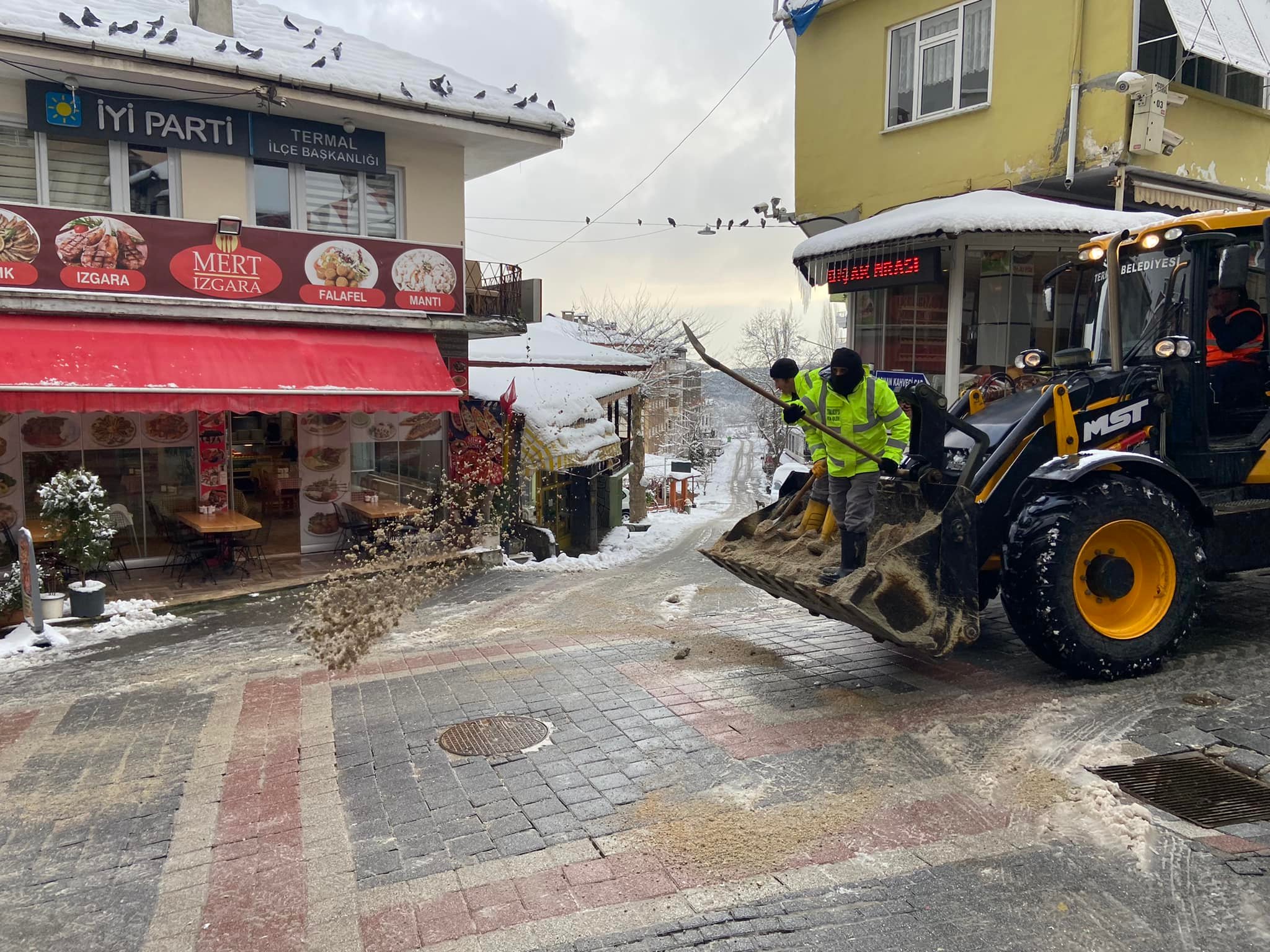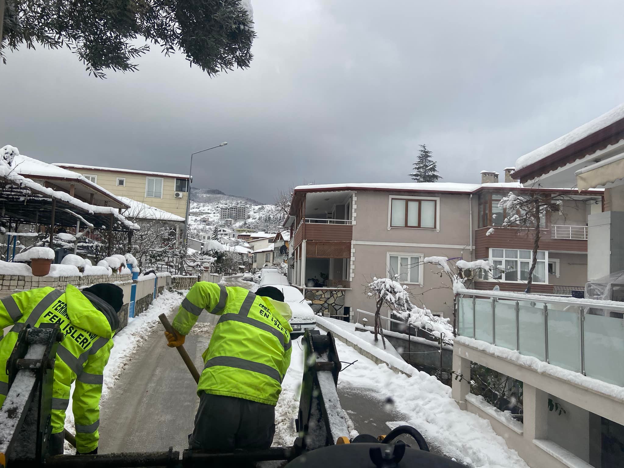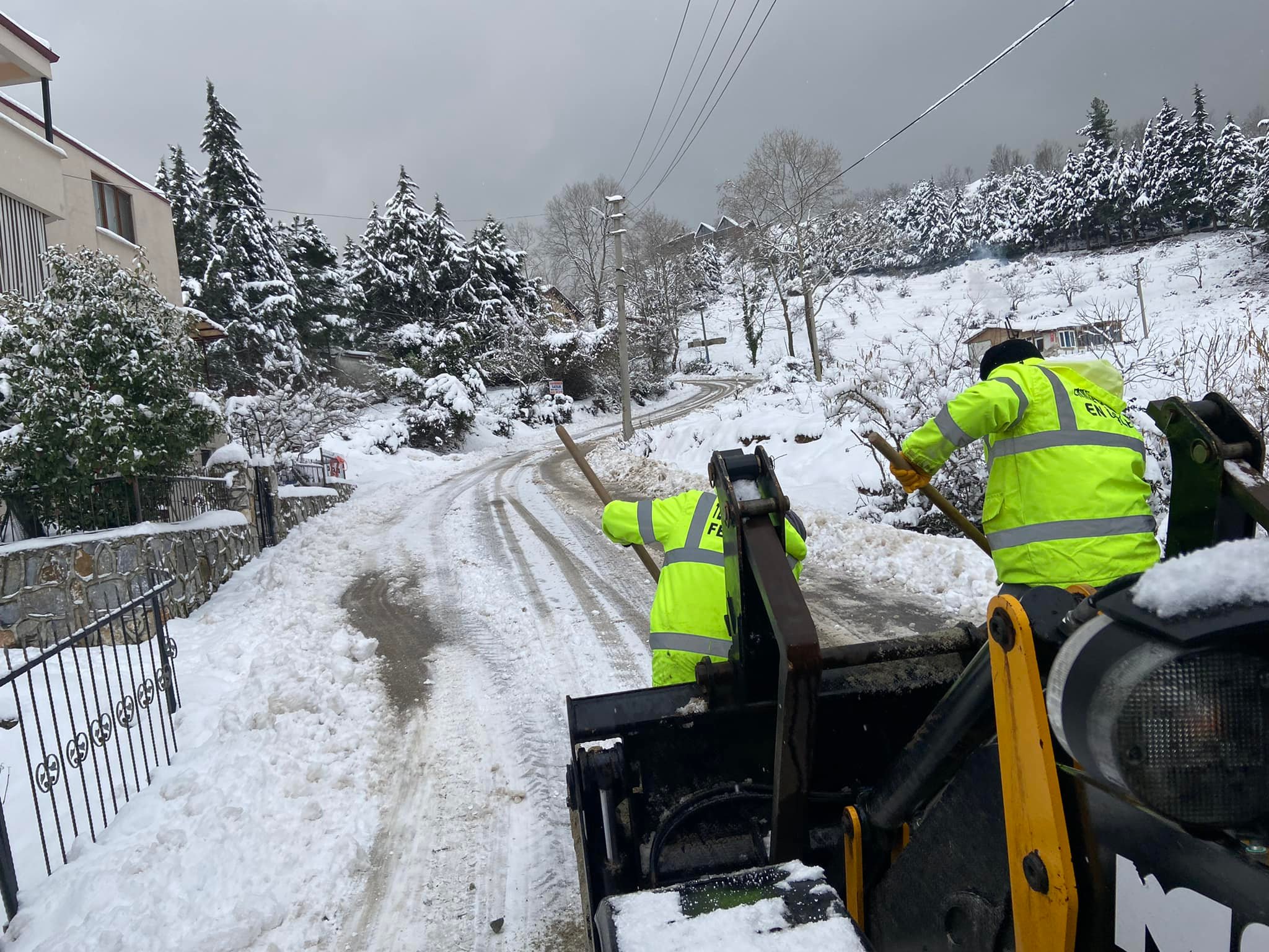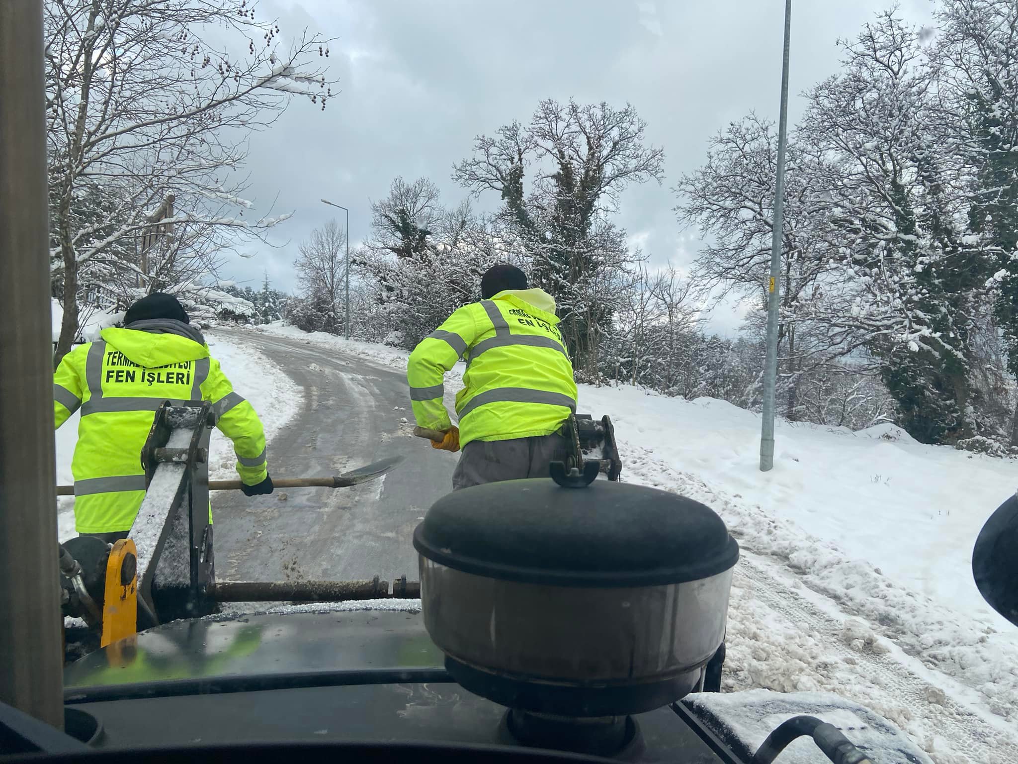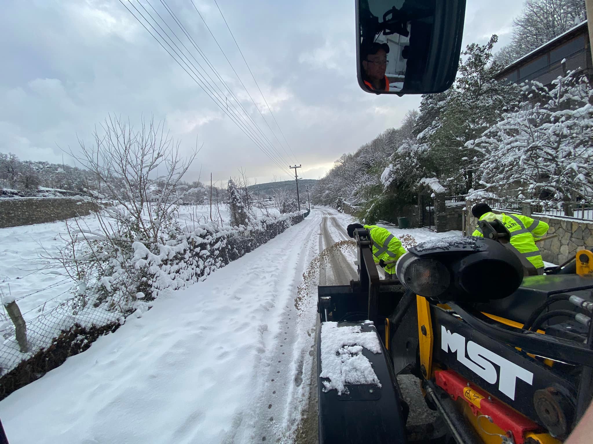 Yoğun kar yağışının devam ettiği ilçemizde Belediyemize bağlı Fen işleri müdürlüğü tarafından yol küreme ve tuzlama işlemleri aralıksız devam ediyor.