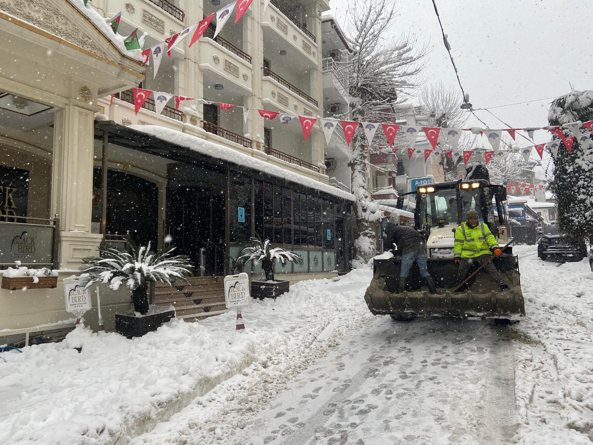 Yoğun kar yağışının devam ettiği ilçemizde Belediyemize bağlı Fen işleri müdürlüğü tarafından yol küreme ve tuzlama işlemleri aralıksız devam ediyor.