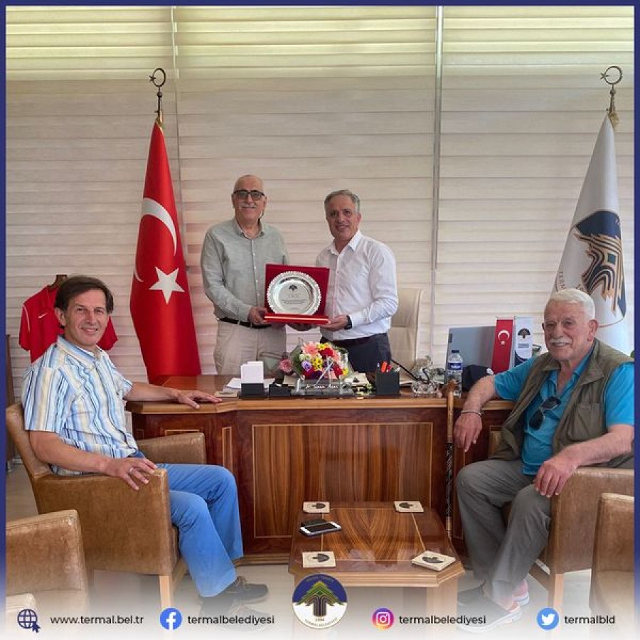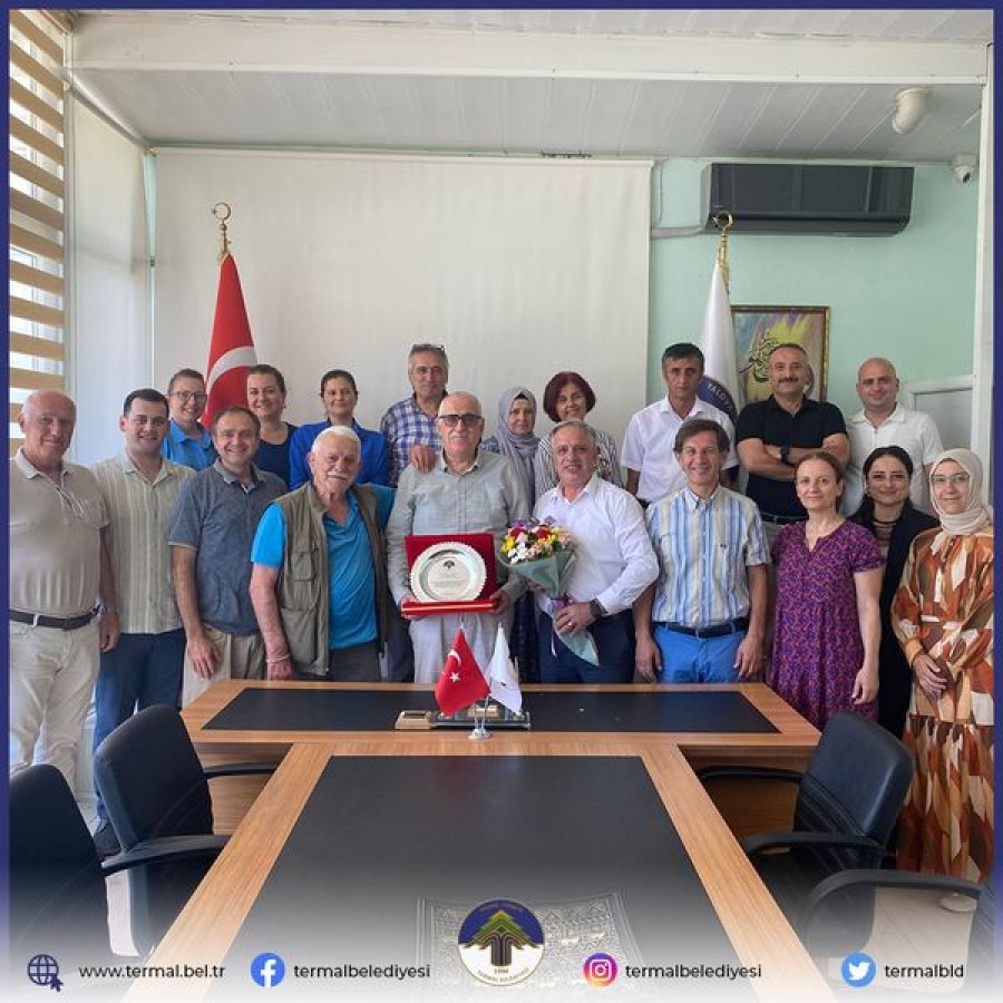 Belediyemizin kuruluş yılından itibaren bizimle 29 yıl boyunca emek vermiş olan yazı işleri müdürümüz İlyas Özer'in emekliliği dolayısıyla kurucu belediye başkanımız S. Sırrı Acar, önceki dönem belediye başkanımız İsmail Atik ve mevcut belediye başkanımız H. Sinan Acar, bir araya gelerek yapmış olduğu özverili çalışmalarından dolayı kendisine teşekkür plaketi sundular. Biz de Termal Belediyesi olarak emeklilik hayatında kendisine sağlık ve huzur dolu yıllar diliyoruz.